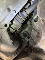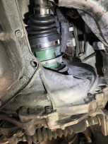 車検の点検中、左前のドライブシャフトブーツの破れ発見!